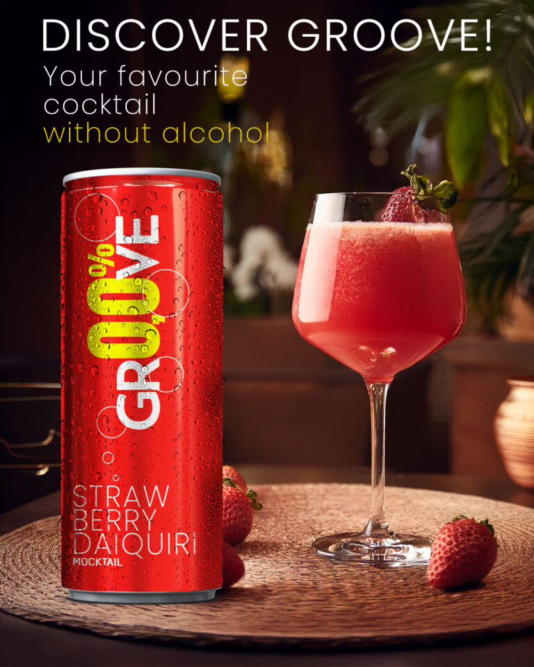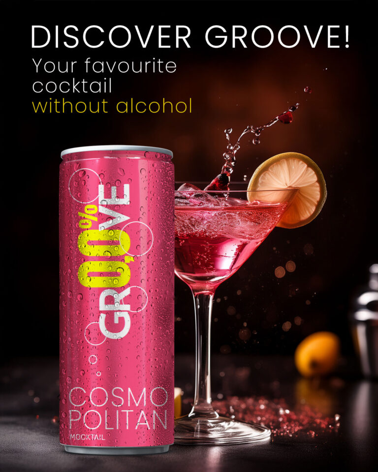 Groove Mocktails are ready-to-drink, non-alcoholic cocktails in a can, inspired by classic bar drinks. Perfect for parties, barbecues, get-togethers with friends, or simply relaxing at home −alcohol-free, yet with the full taste and vibe of a real cocktail.